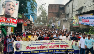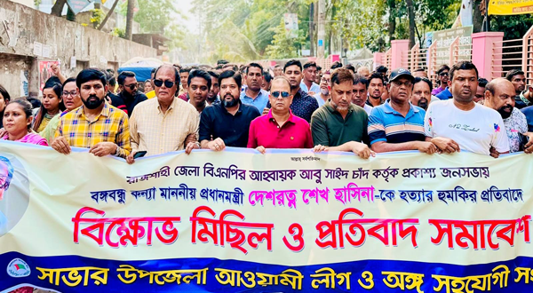প্রধানমন্ত্রী শেখ হাসিনাকে প্রাণনাশের হুমকির প্রতিবাদে সাভারে বিক্ষোভ মিছিল