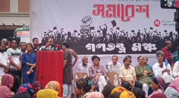 শুক্রবার (১২ মে) বিকালে রাজধানীর জাতীয় প্রেসক্লাবের সামনে আয়োজিত সমাবেশে এসব কথা বলেন গণতন্ত্র মঞ্চের জ্যেষ্ঠ নেতারা। ক্ষমতাসীন সরকারের পদত্যাগ, অন্তর্বর্তী সরকারের অধীনে নির্বাচন ও সংবিধান সংস্কারসহ ১৪ দফা দাবিতে অনুষ্ঠিত এই সমাবেশে বক্তব্য দেন নাগরিক ঐক্যের সভাপতি মাহমুদুর রহমান মান্না, বিপ্লবী ওয়ার্কার্স পার্টির সাধারণ সম্পাদক সাইফুল হক, গণসংহতি আন্দোলনের প্রধান সমন্বয়কারী জোনায়েদ সাকি, ভাসানী অনুসারী পরিষদের আহ্বায়ক শেখ রফিকুল ইসলাম বাবলু। সভাপতিত্ব করেন রাষ্ট্র সংস্কার আন্দোলনের সমন্বয়ক হাসনাত কাইয়ুম।