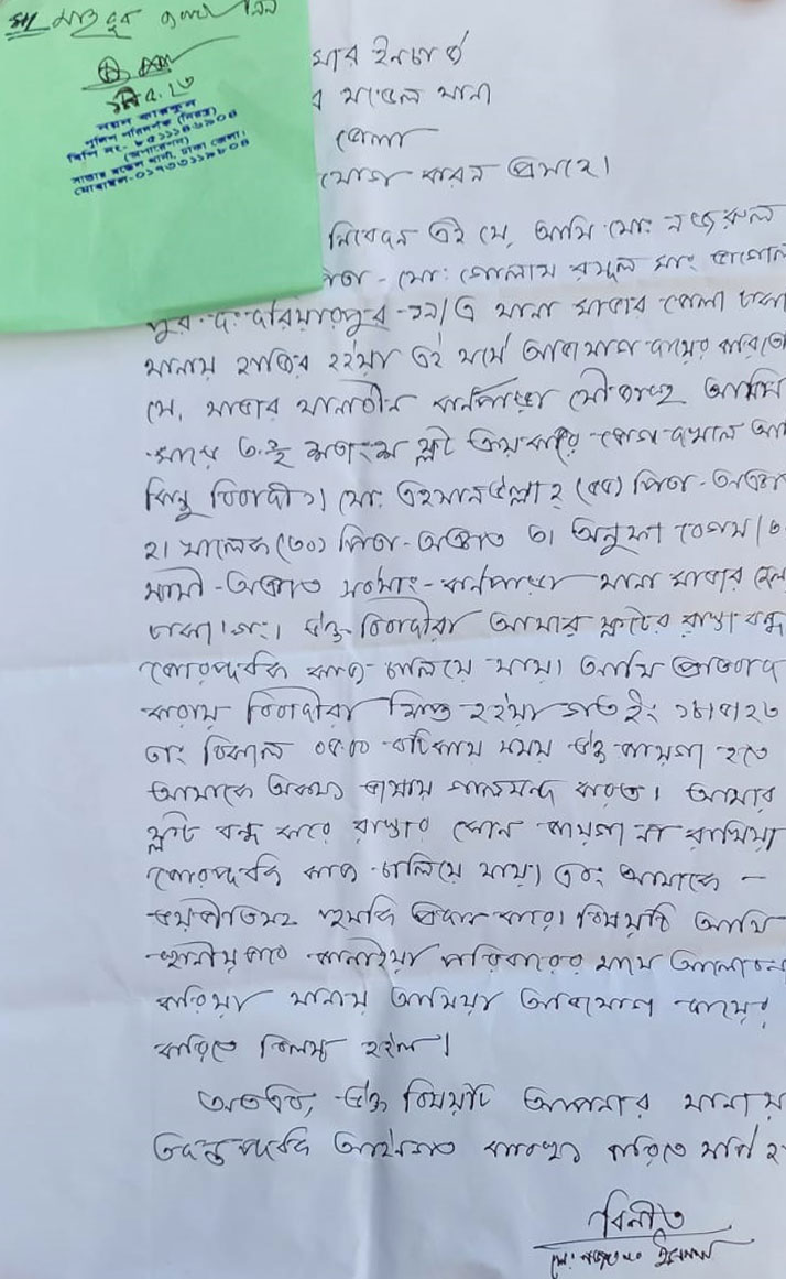 সোমবার (২৪ জুলাই) দুপুরে সাংবাদিকদের এসব অভিযোগ করেন ভুক্তভোগীর প্রতিবেশী পরিবারের সদস্যরা। এ সময় লিখিত বক্তব্য পাঠ করেন ভুক্তভোগী মোহাম্মদ নজরুল। ভুক্তভোগী মোহাম্মদ নজরুল বলেন, অনেক কষ্ট করে জমি ক্রয় করেছি। পৌরসভার সকল নিয়মনীতি অনুযায়ী সুন্দর সুশৃঙ্খল পরিবেশে স্বপ্নের বাড়ি বানাবো। কিন্তু প্রতিবেশি এহসানউল্লাহ তার জমির সীমানা ঘেঁষে রাজউক নকশা অনুমোদন ছাড়াই চলমান রাস্থার উপর বারান্দা বাড়িয়ে ভবন নির্মাণ করছেন। এই ভবন নির্মাণে পৌরসভার নিয়ম অনুযায়ী চারিদিকে ৩ ফুট করে চারপাশে জমি ফাঁকা রেখে ভবন নির্মাণ করার বিধান থাকলেও, ভবন মালিক এহসানউল্লাহ তা মানছেন না। পৌরসভার নীতিমালাকে বৃদ্ধাঙ্গুলী দেখিয়ে, বিল্ডিং কোড না মেনে অবৈধ ও নিয়ম বহির্ভূতভাবে ভবন নির্মাণ করছেন। তিনি বলেন, ওই ভবন নির্মাণের কারণে প্রতিবেশিদরে ঝুঁকিপূর্ন হয়ে পড়েছে বসবাস। ওই ভবনের পানি ও পয়ো নিষ্কাশনের পাইপ আমাদের জমির উপর দিয়ে এবং বৃষ্টির পানি, ভবনের ছাদের পানি ও কার্ণিশের সমস্ত পানি আমার জমির উপর পড়ে ভবনের ক্ষতি সাধন করছে। ভবন মালিক এহসানউল্লাহকে বারবার বলা হলেও তিনি কারো কথা শুনছেন না।
