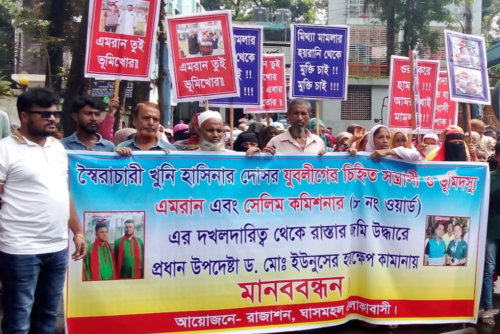 সাভারে ভূমিদস্যুদের বিচারের দাবীতে মানববন্ধ